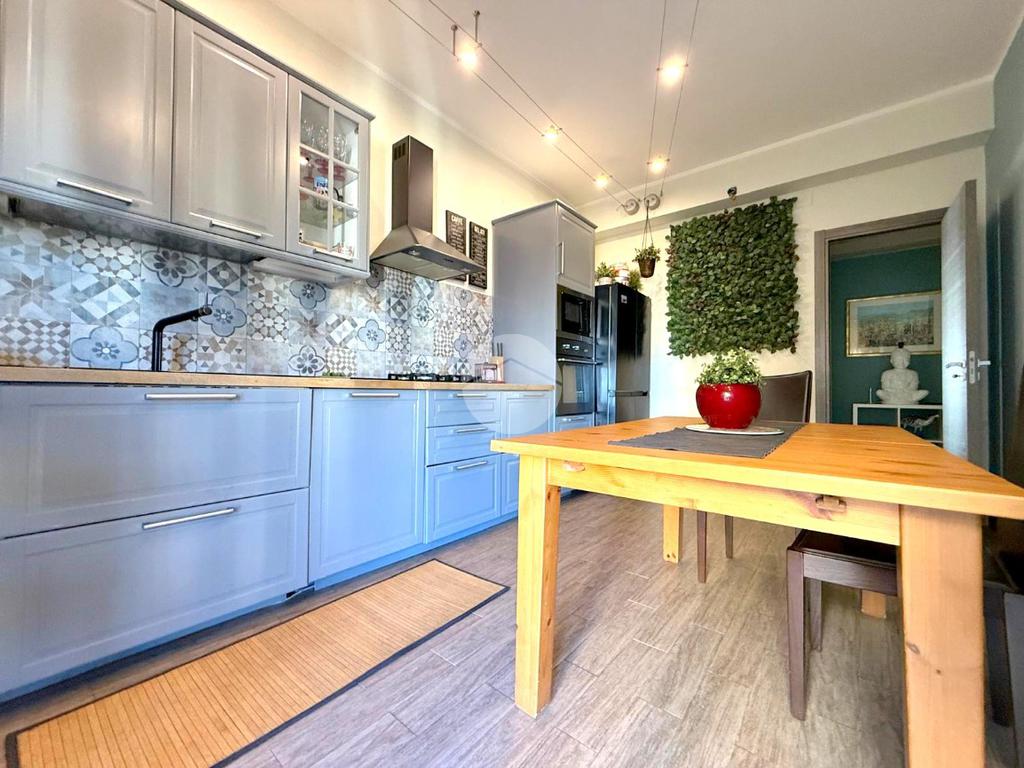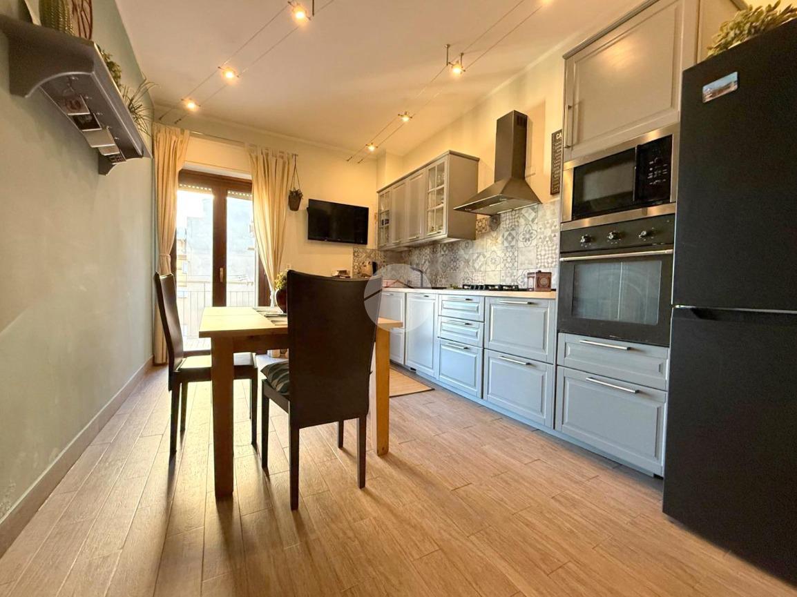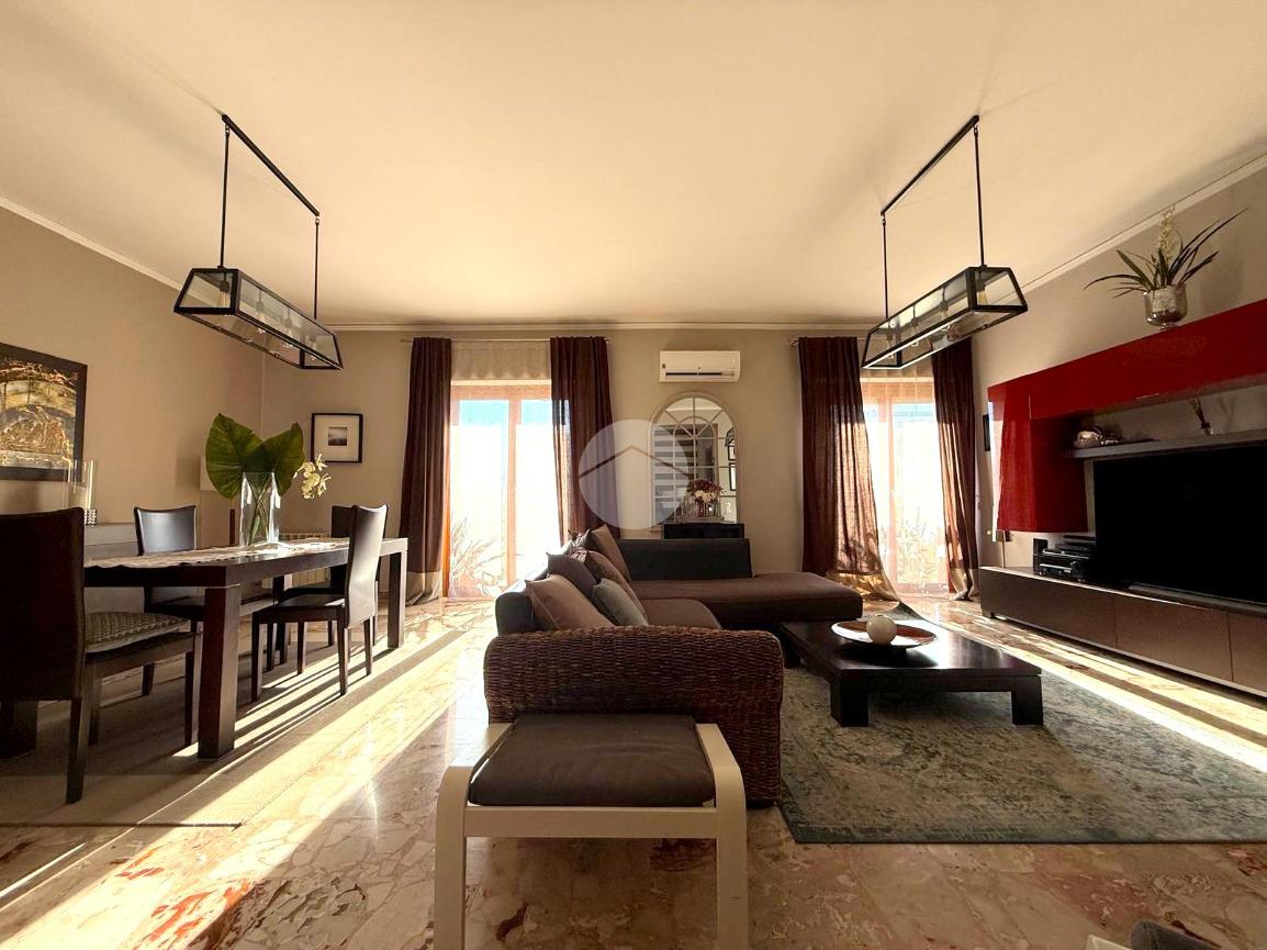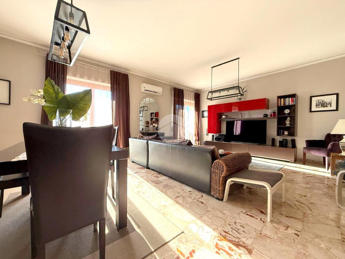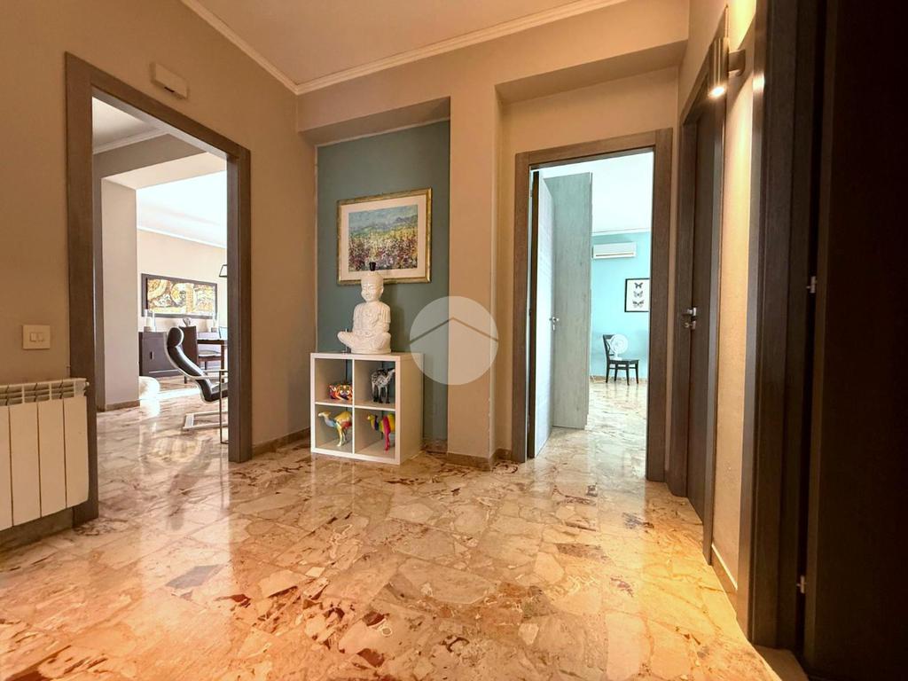 All'ingresso si viene accolti da un ampio salone doppio con affaccio su via principale: l'ambiente è reso particolarmente luminoso e arioso da un balcone spazioso che regala una vista panoramica aperta sulla città. Il disimpegno conduce a una cucina abitabile di circa 15 mq, anch'essa dotata di un balcone con suggestiva vista mare sul retroprospetto.