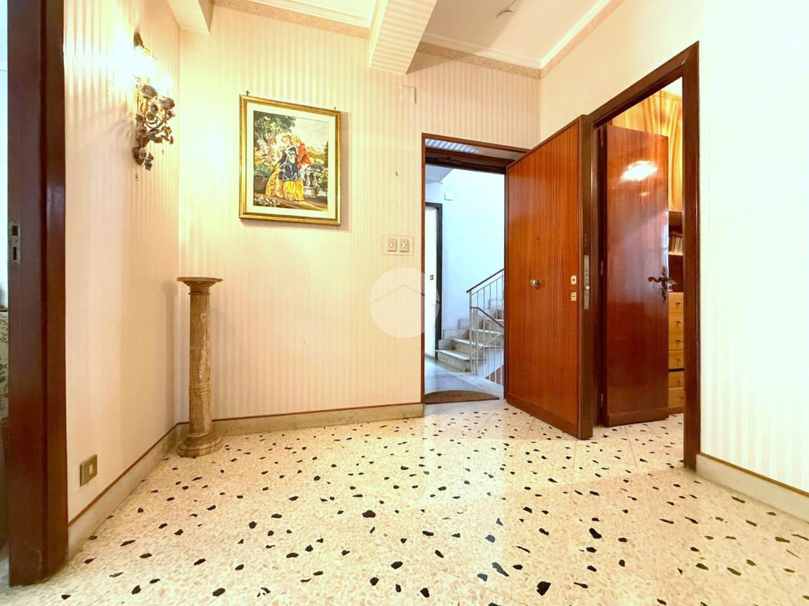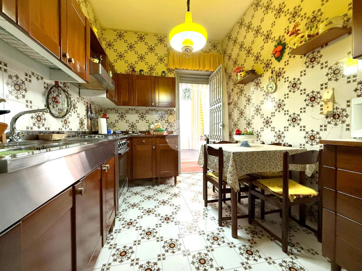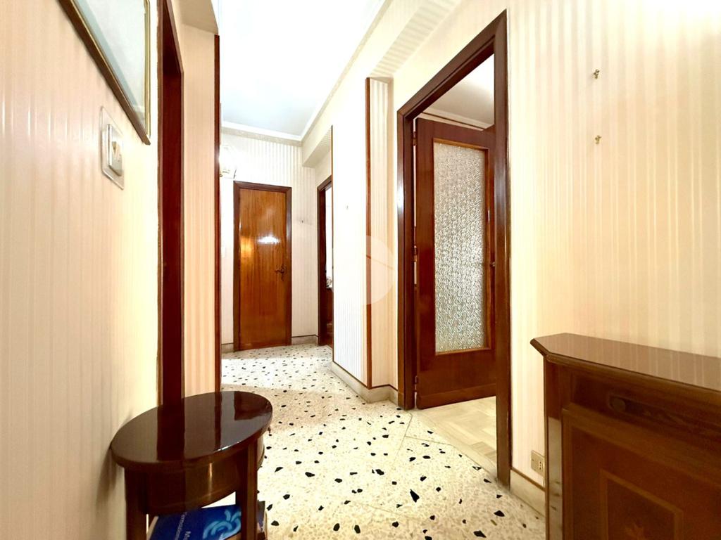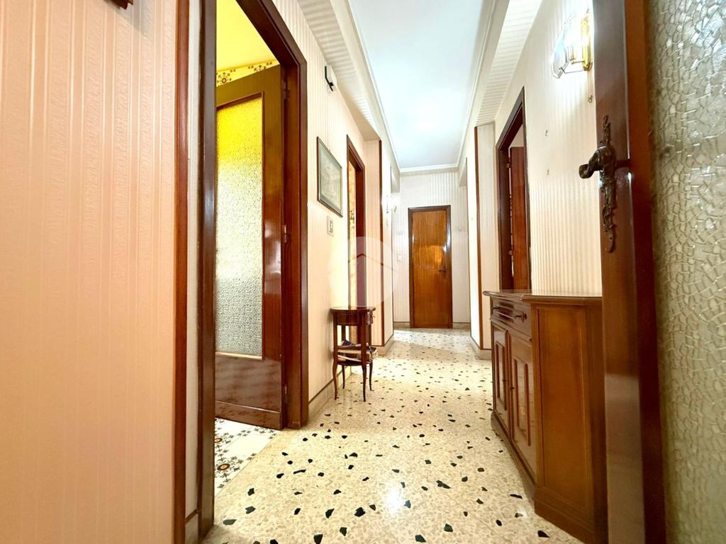 Il corridoio disimpegna le varie aree della casa, conducendo a una cucina abitabile, anch'essa servita da un balcone verandato con esposizione sul retroprospetto.