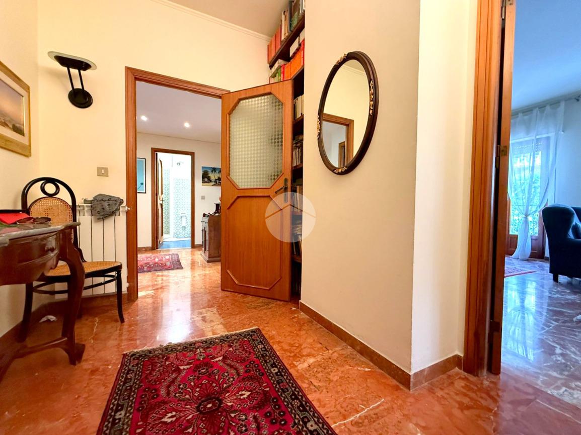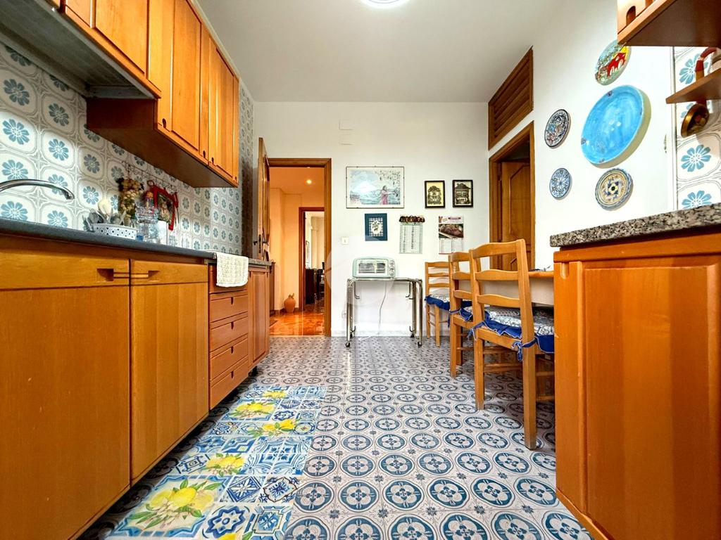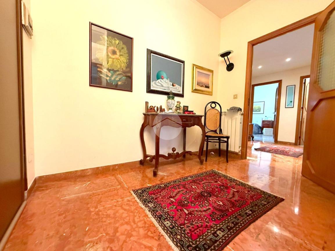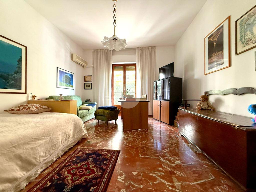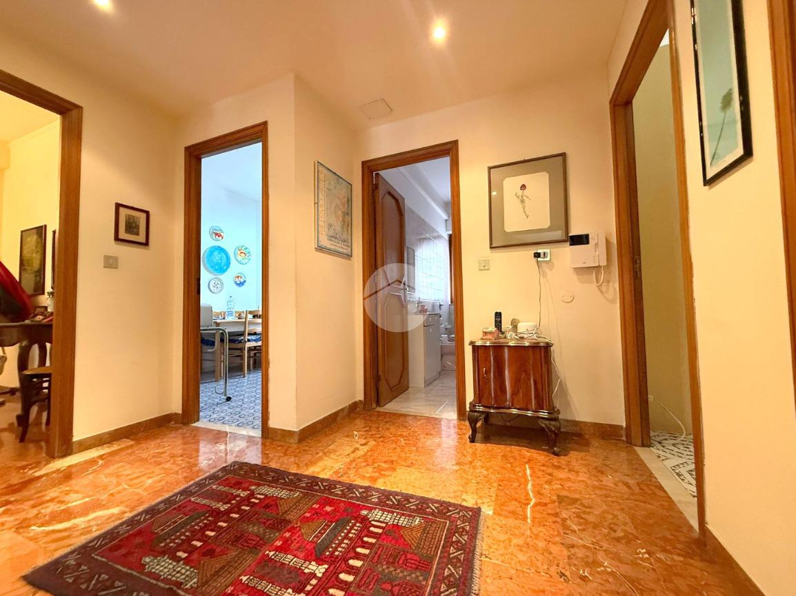 L’immobile, situato al secondo piano, gode di una notevole luminosità grazie alla doppia esposizione. Gli ambienti si presentano in buono stato e ben distribuiti: l’ingresso, dotato di porta blindata, introduce in un ampio salone doppio con balcone che affaccia sulla via principale. Dal disimpegno si accede a una comoda cucina con annesso ripostiglio e a un secondo balcone con vista su Villa Tricoli. A completare la proprietà vi sono due spaziose camere matrimoniali e doppi servizi.
