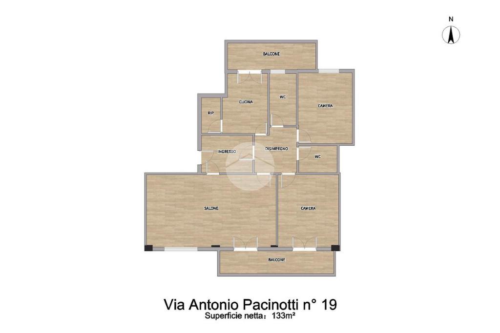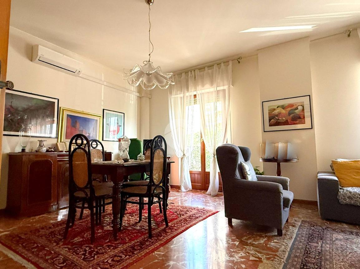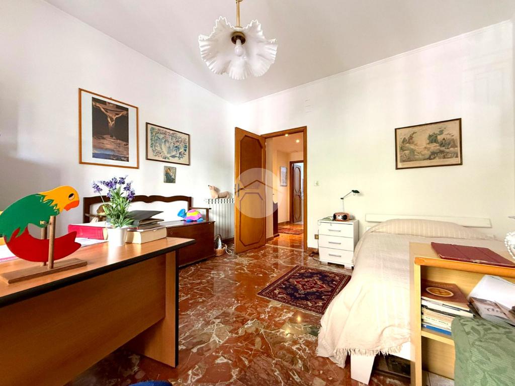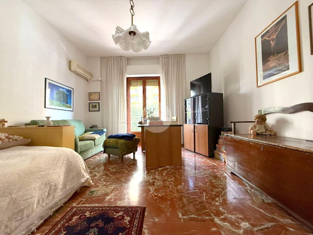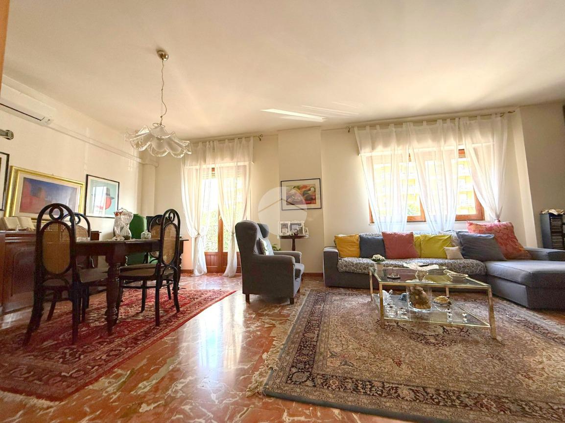 L’immobile, situato al secondo piano, gode di una notevole luminosità grazie alla doppia esposizione. Gli ambienti si presentano in buono stato e ben distribuiti: l’ingresso, dotato di porta blindata, introduce in un ampio salone doppio con balcone che affaccia sulla via principale. Dal disimpegno si accede a una comoda cucina con annesso ripostiglio e a un secondo balcone con vista su Villa Tricoli. A completare la proprietà vi sono due spaziose camere matrimoniali e doppi servizi.