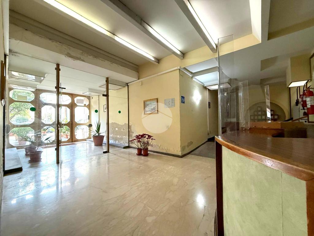L’immobile è situato al primo piano di un edificio di nove piani, dotato di ascensore e servizio di portierato attivo per l’intera giornata, a garanzia di comfort e sicurezza.